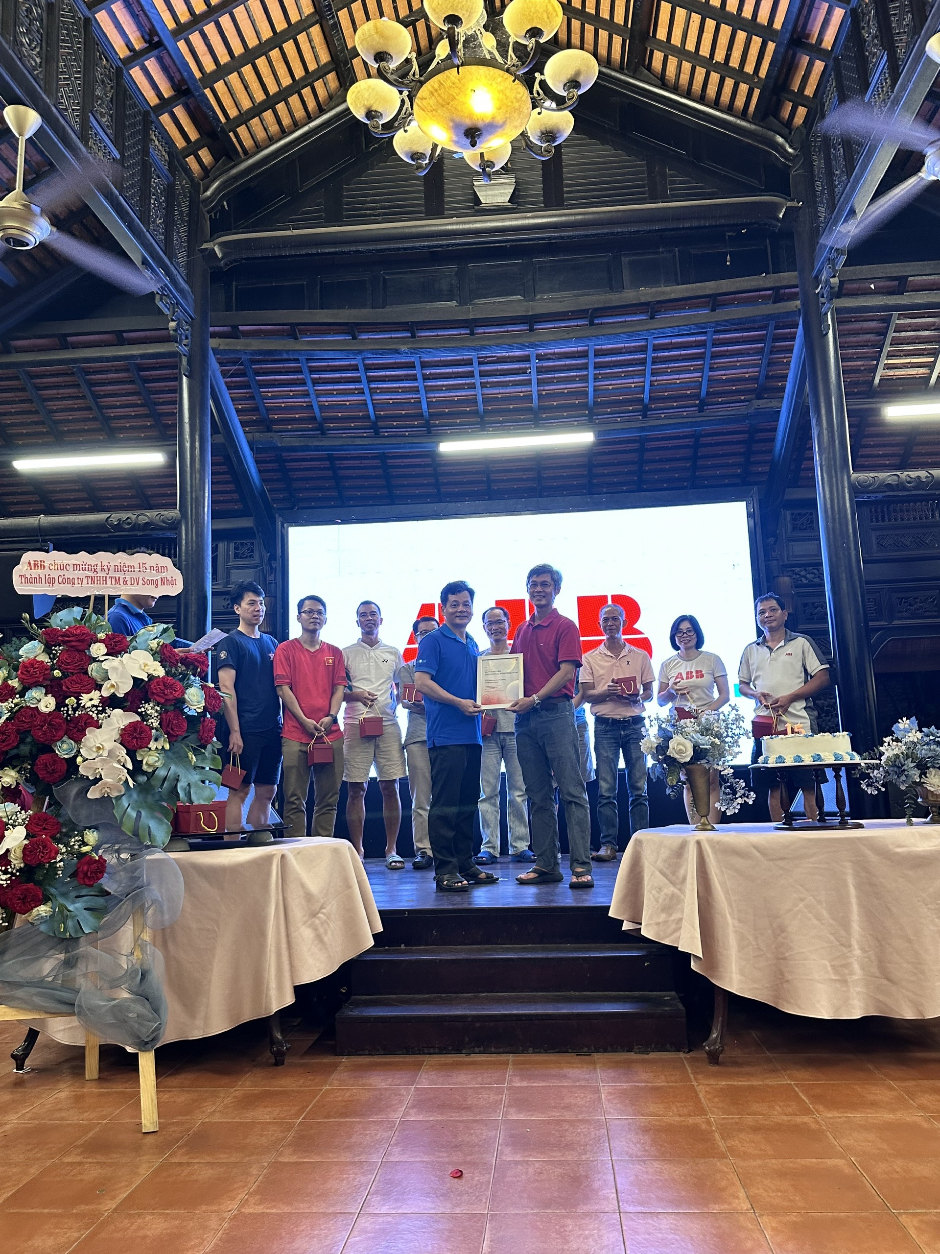 Sau trận giao lưu bóng đá đầy hào hứng giữa Song Nhật và ABB, cả hai tập thể đã cùng nhau tham dự bữa tiệc ấm áp Mừng kỷ niệm 15 năm thành lập công ty Song Nhật – một dấu mốc đáng nhớ, đánh dấu hành trình trưởng thành, đoàn kết và không ngừng phát triển.