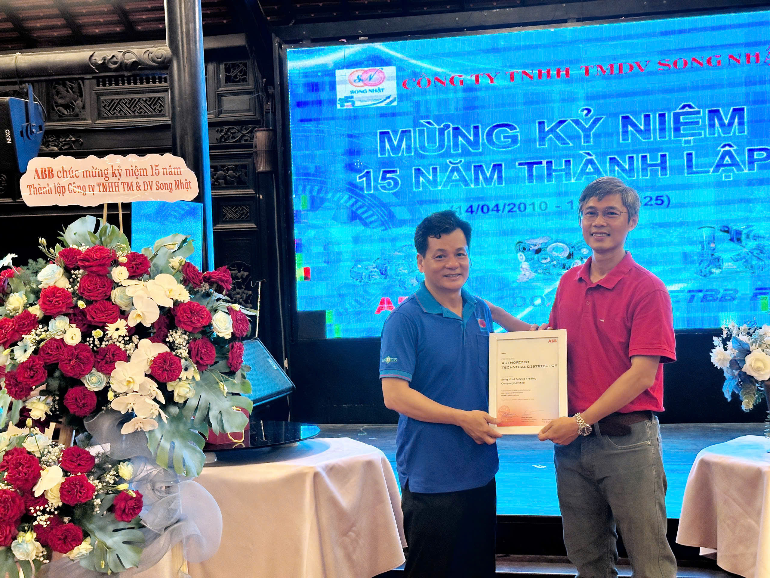 🌟 Điểm nhấn của buổi tiệc là khoảnh khắc ABB trao Giấy chứng nhận Đại lý năm 2025 cho Song Nhật – như một lời khẳng định mạnh mẽ về niềm tin, sự đồng hành và quan hệ hợp tác bền vững giữa hai doanh nghiệp.